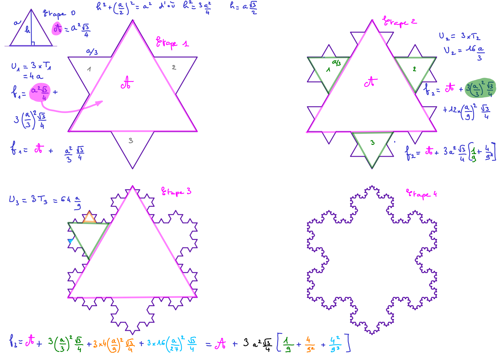 2019-05-31-vk2.Fractales.FloconDeVonKoch.Etapes1a4-a